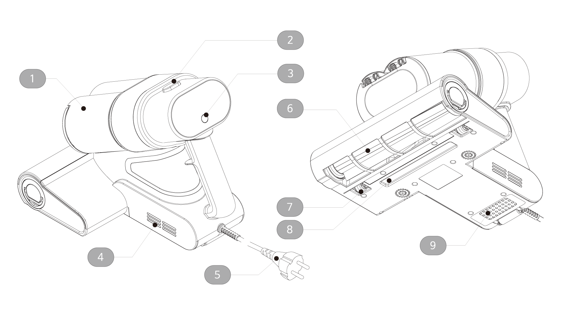 | 7 | 바퀴 센서 | 8 | LED UV-C 살균 램프 | 9 | 열풍 배출구 |