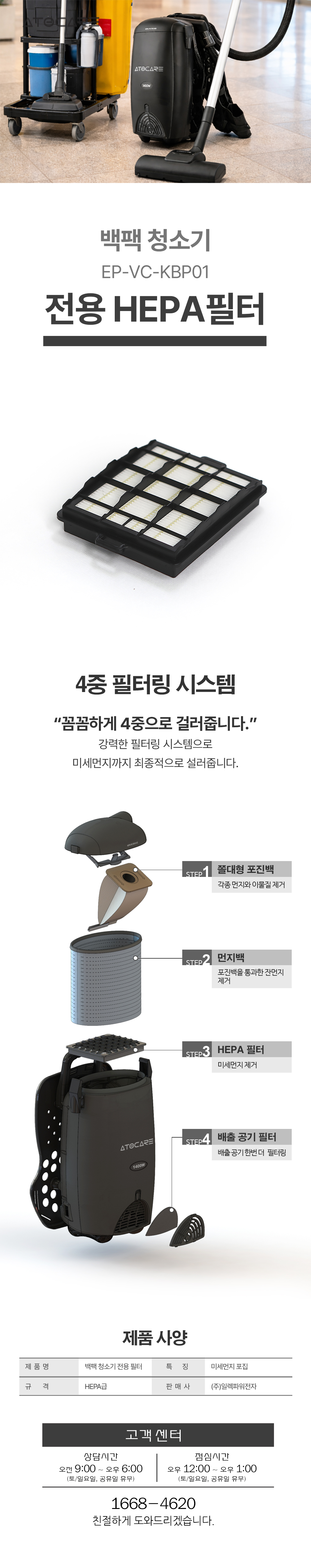 아토케어 백팩청소기 헤파필터